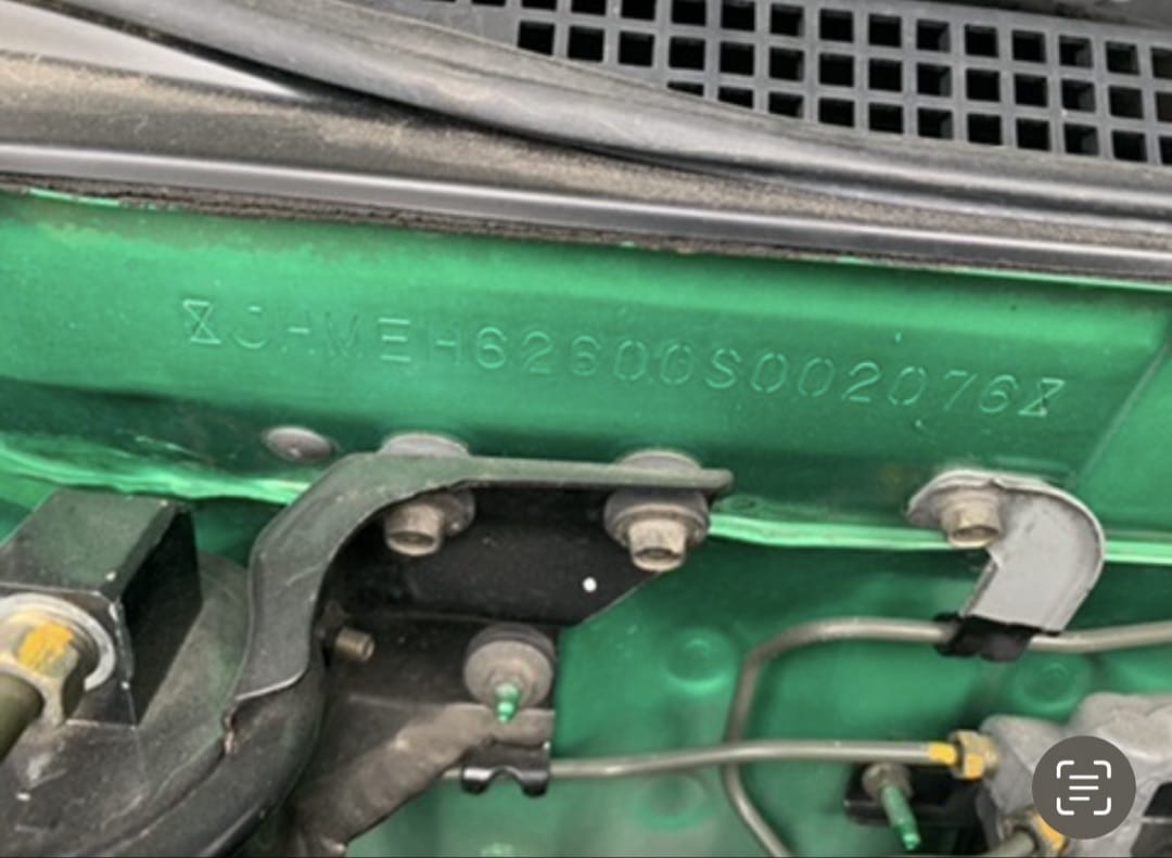 - Stamped numbers on the body sheet metal in the engine compartment or frame rails