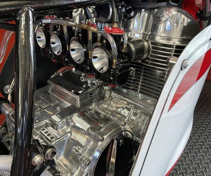 Fully polished & rebuilt engine including racing cams & custom built flat slide carburetors.